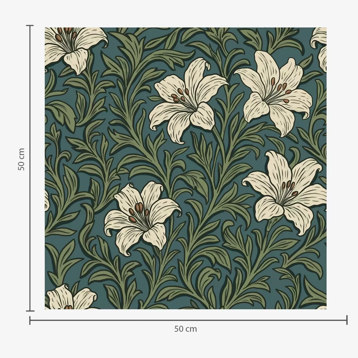Papel pintado Lirios crema entre una densa vegetación sobre un fondo turquesa Nr. a00645