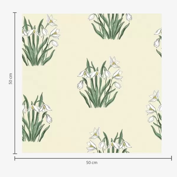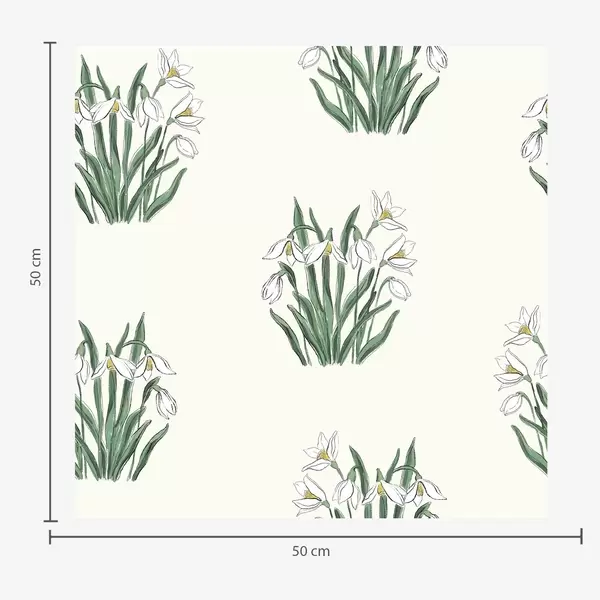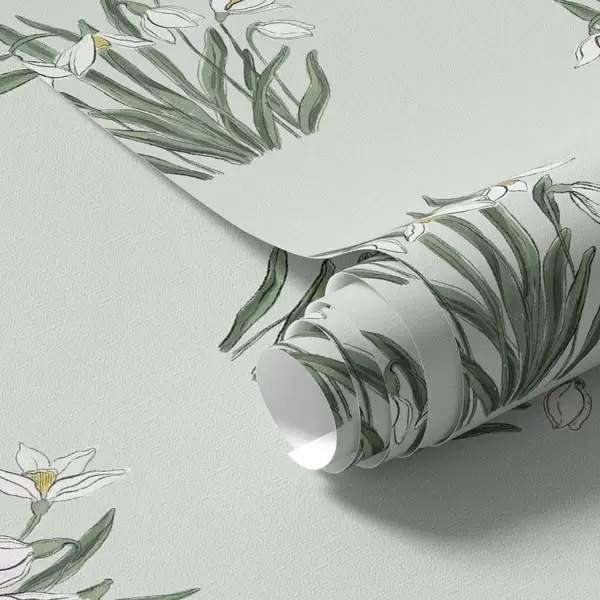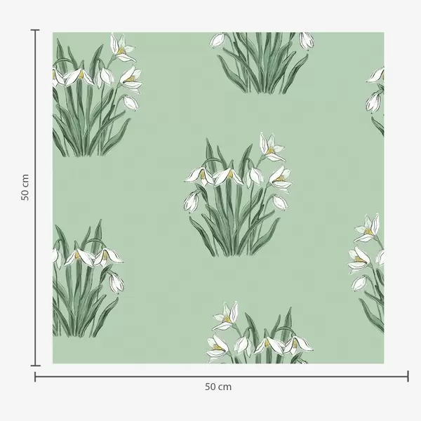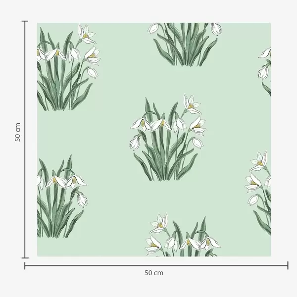 Papel pintado Campanillas de invierno con hojas verdes sobre fondo verde pastel Nr. a00651