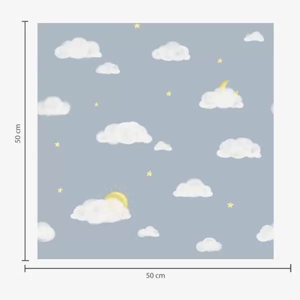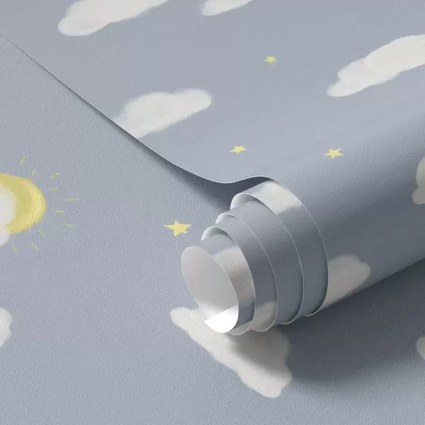 Papel pintado Nubes suaves, estrellas y sol sobre un fondo azul Nr. a00652