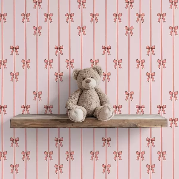 Papel pintado Cintas verticales con lazos, fondo rosa empolvado Nr. a00653v2