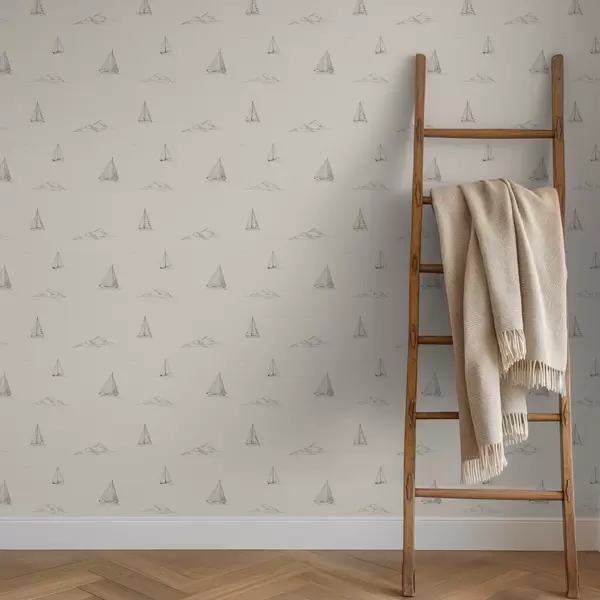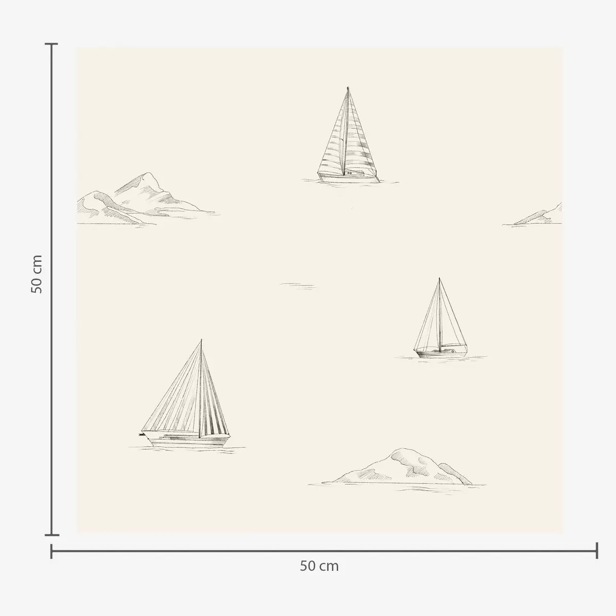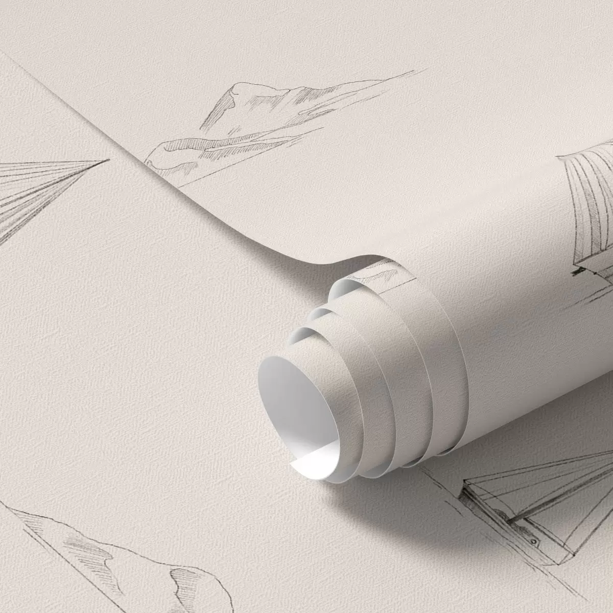 Papel pintado Bocetos de yates e islas, fondo crema cálido. Nr. a00654v1