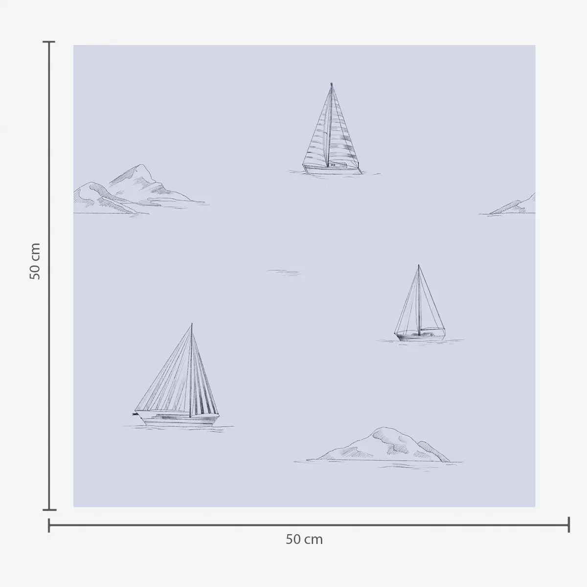 Papel pintado Bocetos de yates e islas, fondo azul Nr. a00654v3