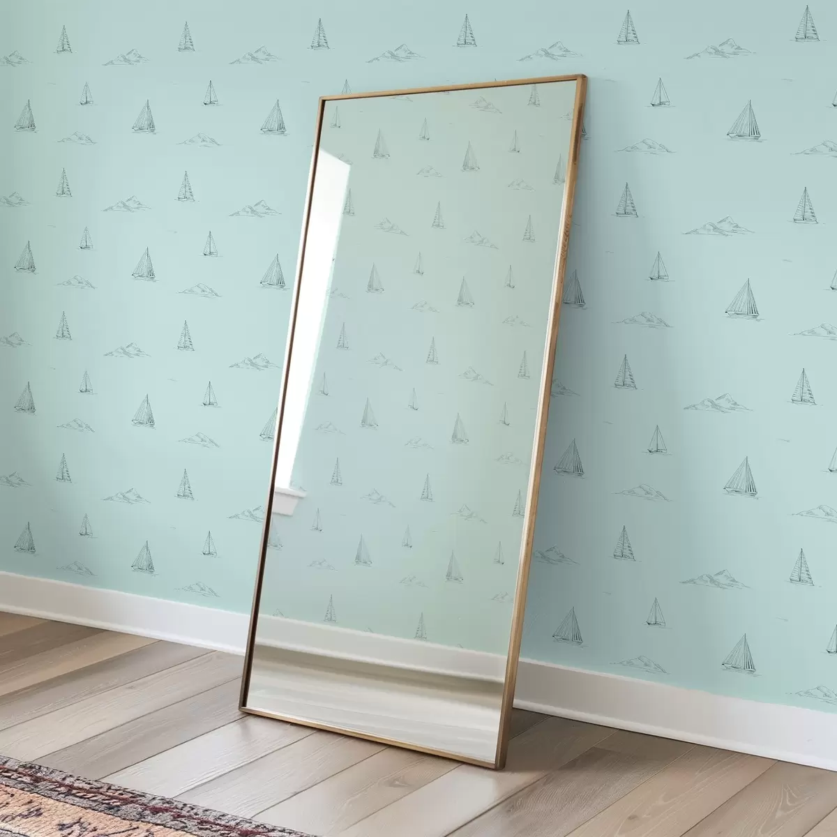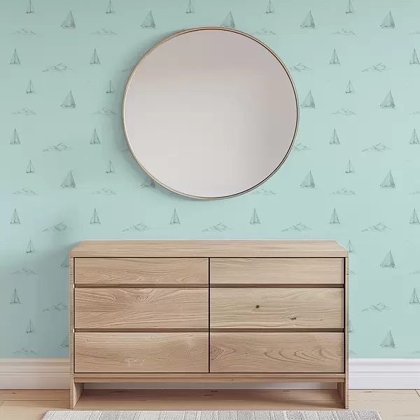Papel pintado Bocetos de yates e islas, fondo verde menta Nr. a00654v4