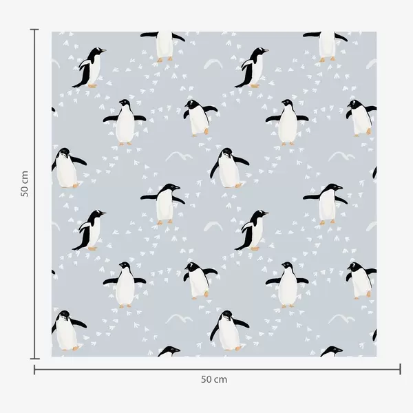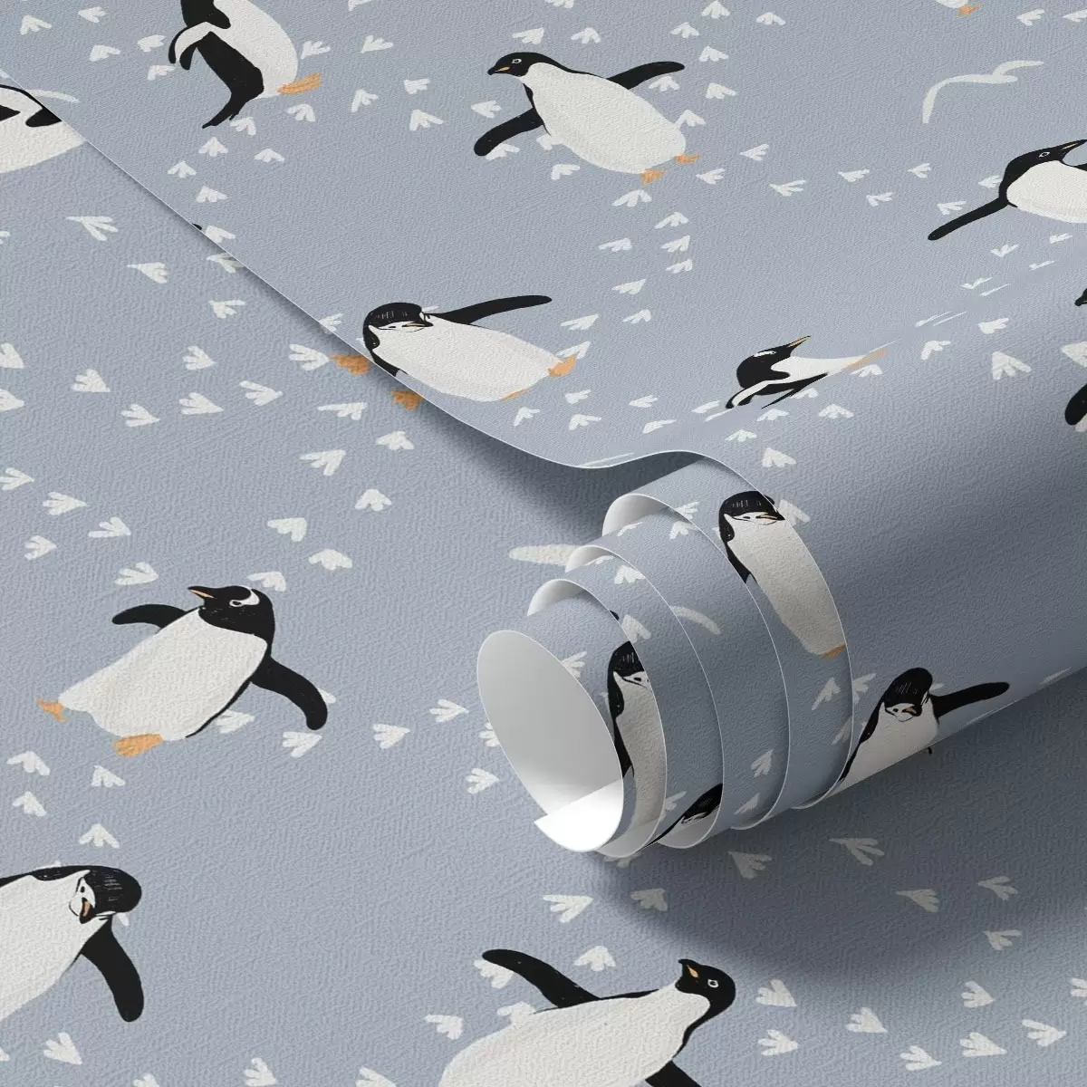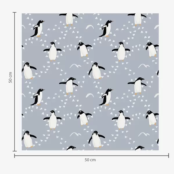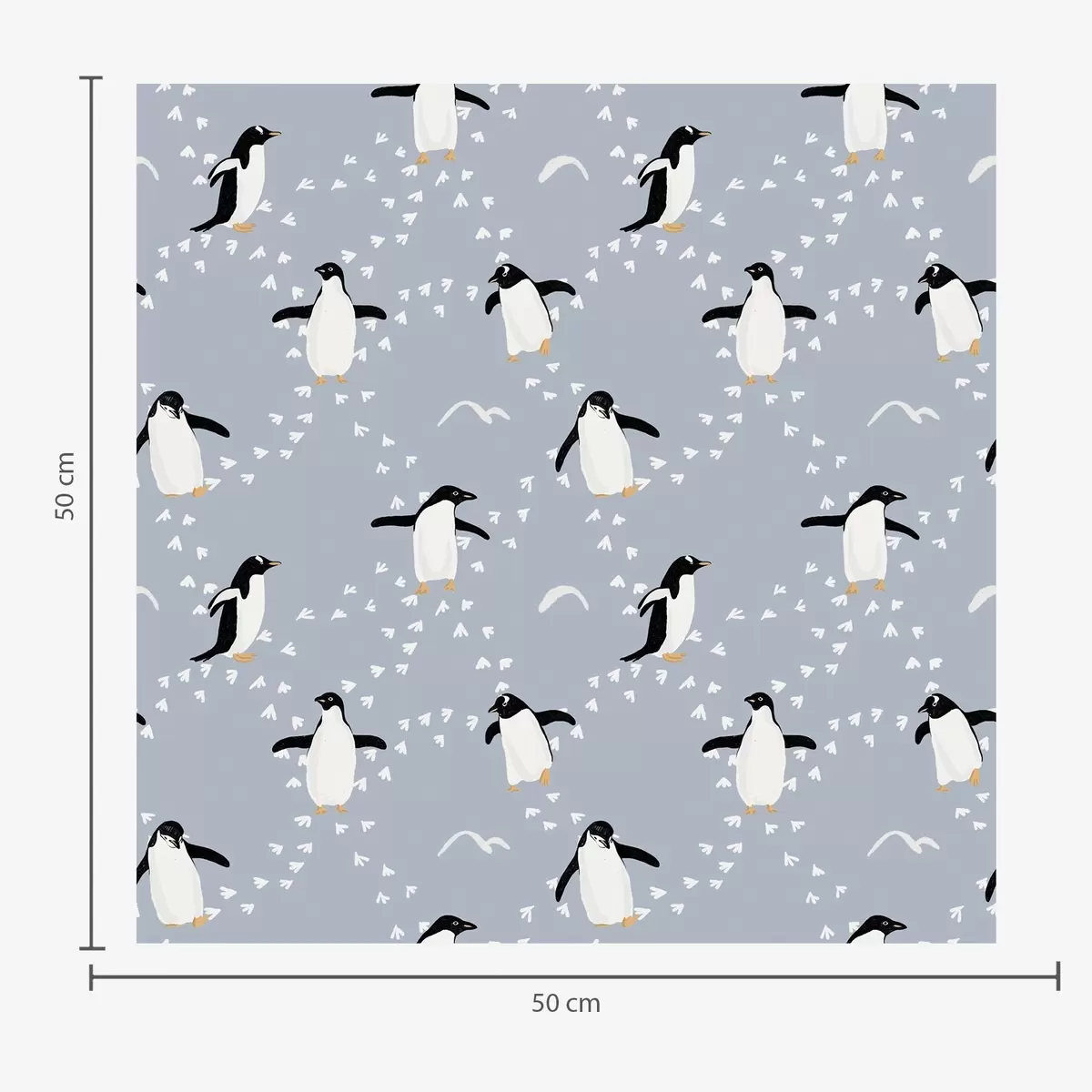 Papel pintado Pingüinos sobre fondo gris azulado con huellas Nr. a00655
