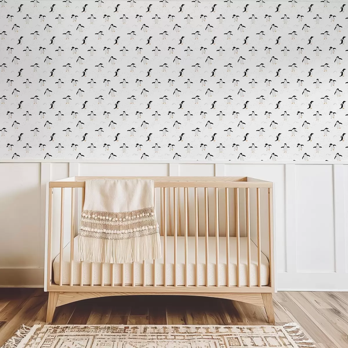 Papel pintado Pingüinos sobre fondo blanco con huellas Nr. a00655v1