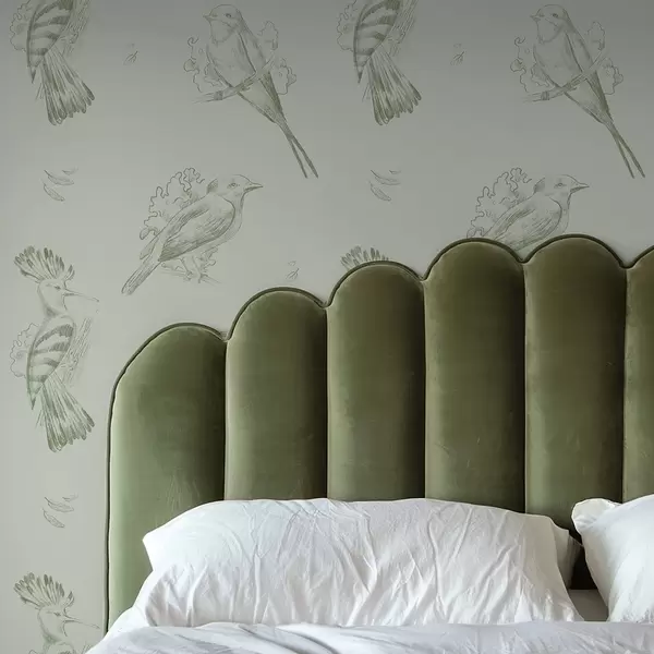 Papel pintado Toile de pájaros: bocetos de pájaros sobre fondo gris verdoso Nr. a00656v1