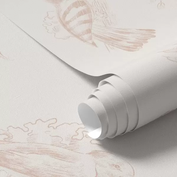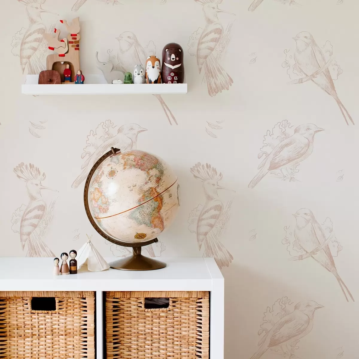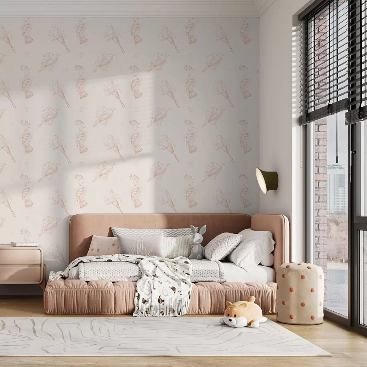 Papel pintado Toile de pájaros: bocetos de pájaros sobre fondo color melocotón-crema. Nr. a00656v2