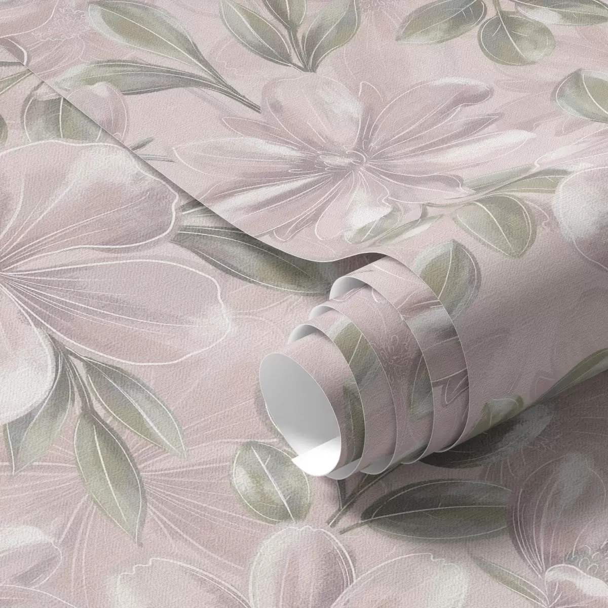 Papel pintado Flores rosas con hojas delicadas sobre un fondo suave Nr. a00675