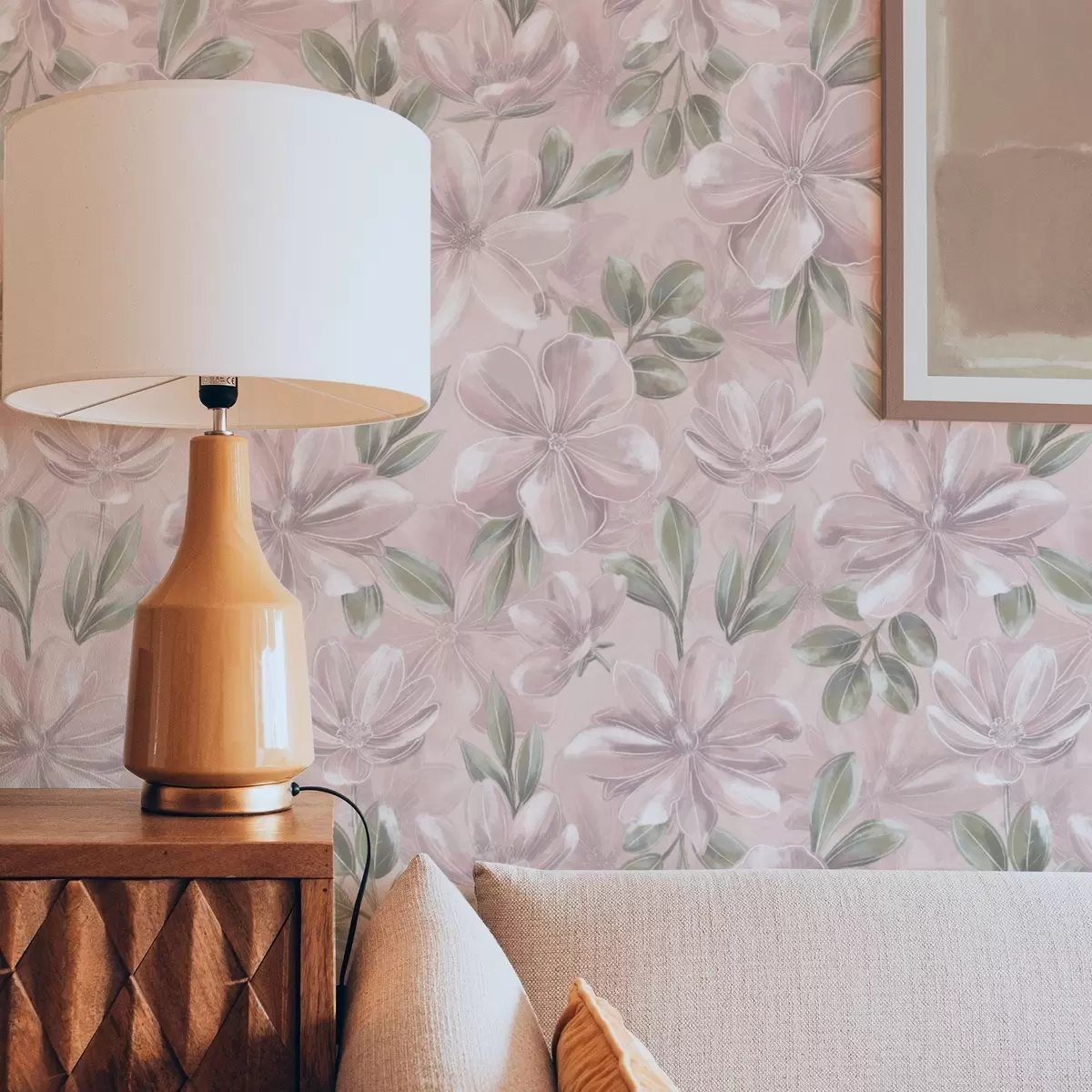 Papel pintado Flores rosas con hojas delicadas sobre un fondo suave Nr. a00675