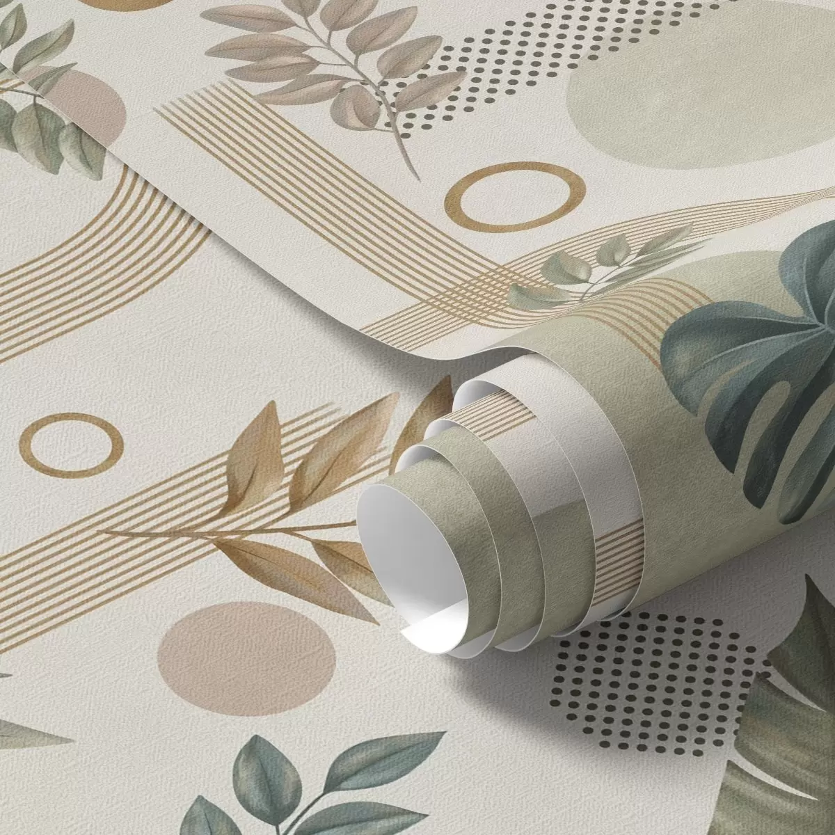 Papel pintado Hojas y formas geométricas en tonos cálidos y tranquilos Nr. a00677