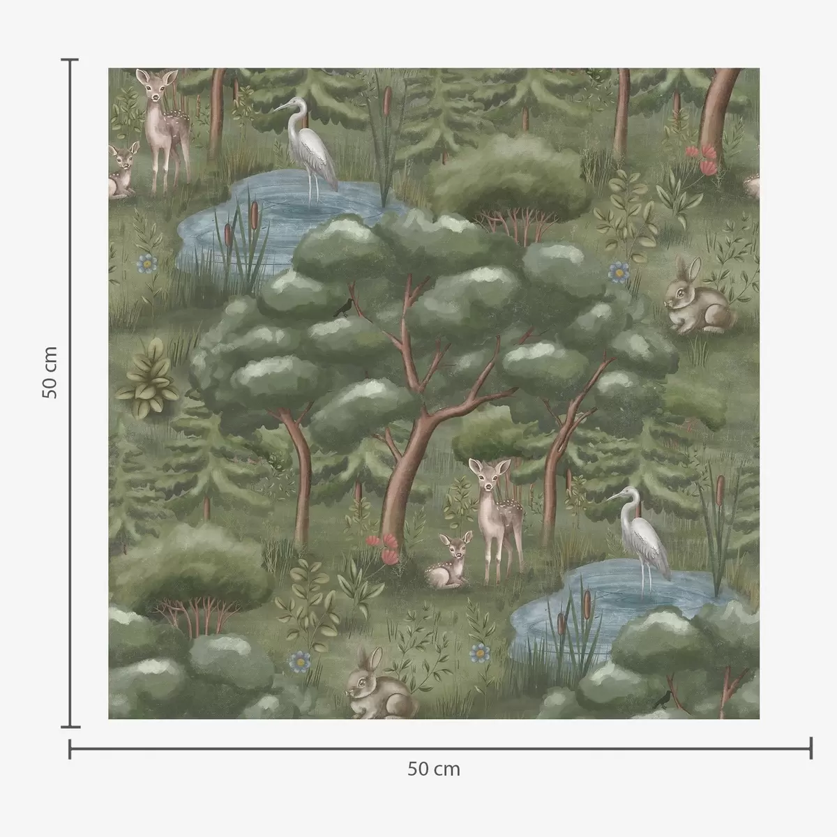 Papel pintado Claro del bosque con cervatillos, conejos y garzas Nr. a00680