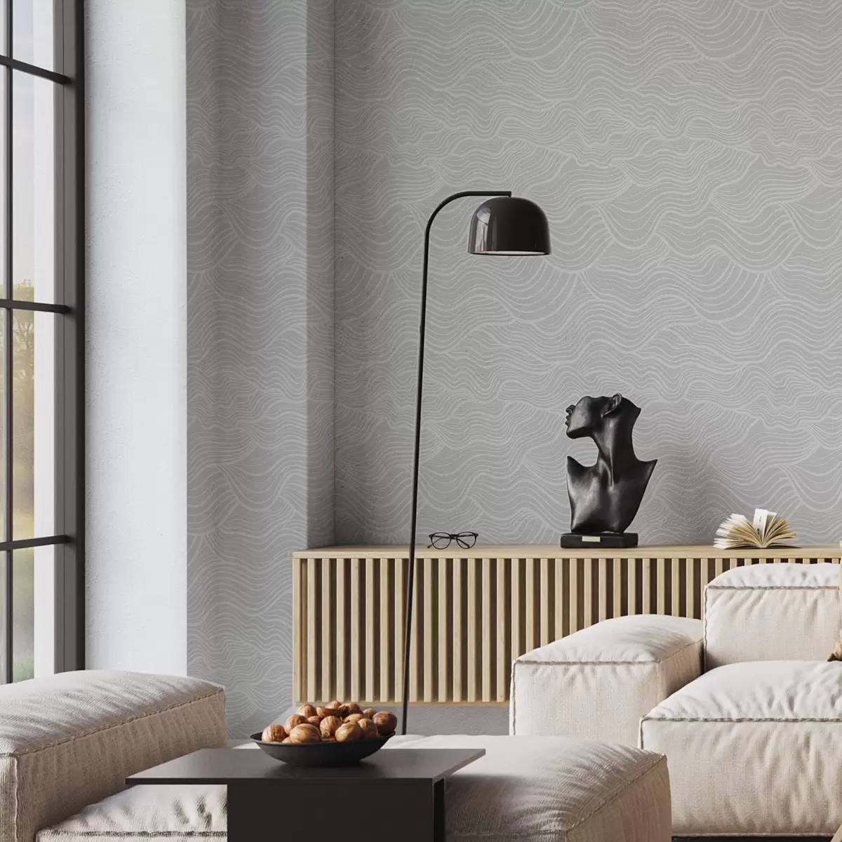 Papel pintado Adorno ondulado: líneas claras sobre fondo gris Nr. a00681v2