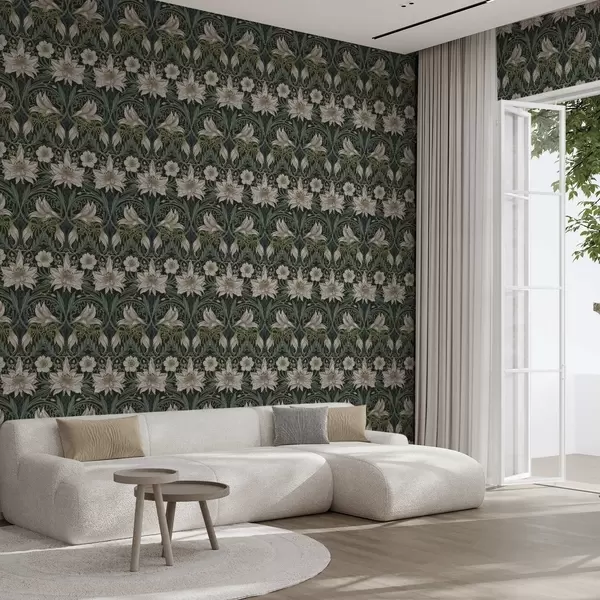 Papel pintado Composición Art Nouveau con lirios sobre fondo oscuro Nr. a00696