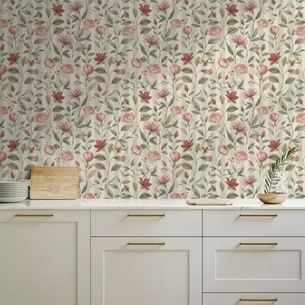 Papel pintado Tallos florales con mariposas sobre un fondo claro Nr. a00698