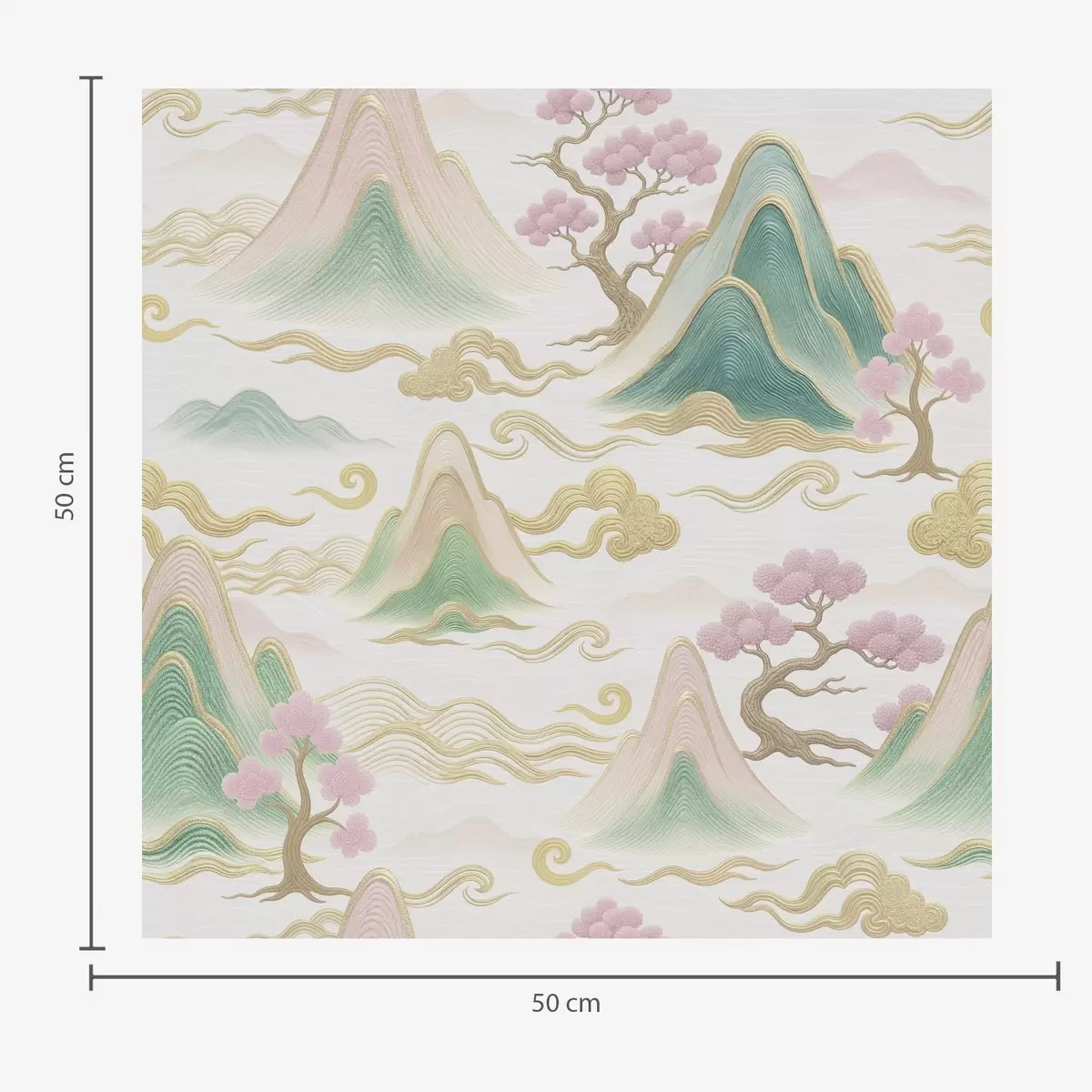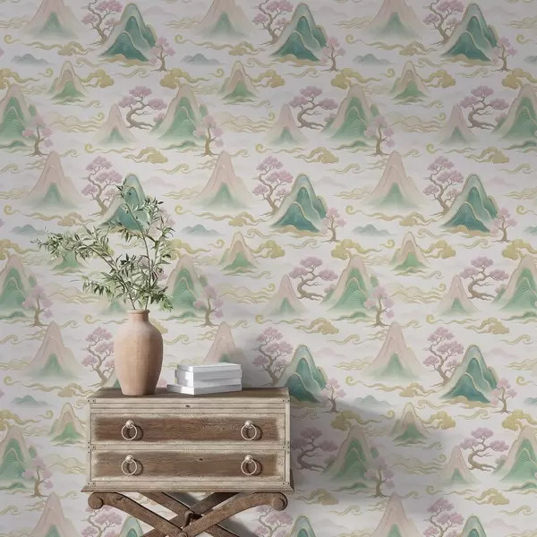 Papel pintado Montañas, nubes y pinos en un estilo decorativo oriental Nr. a00703