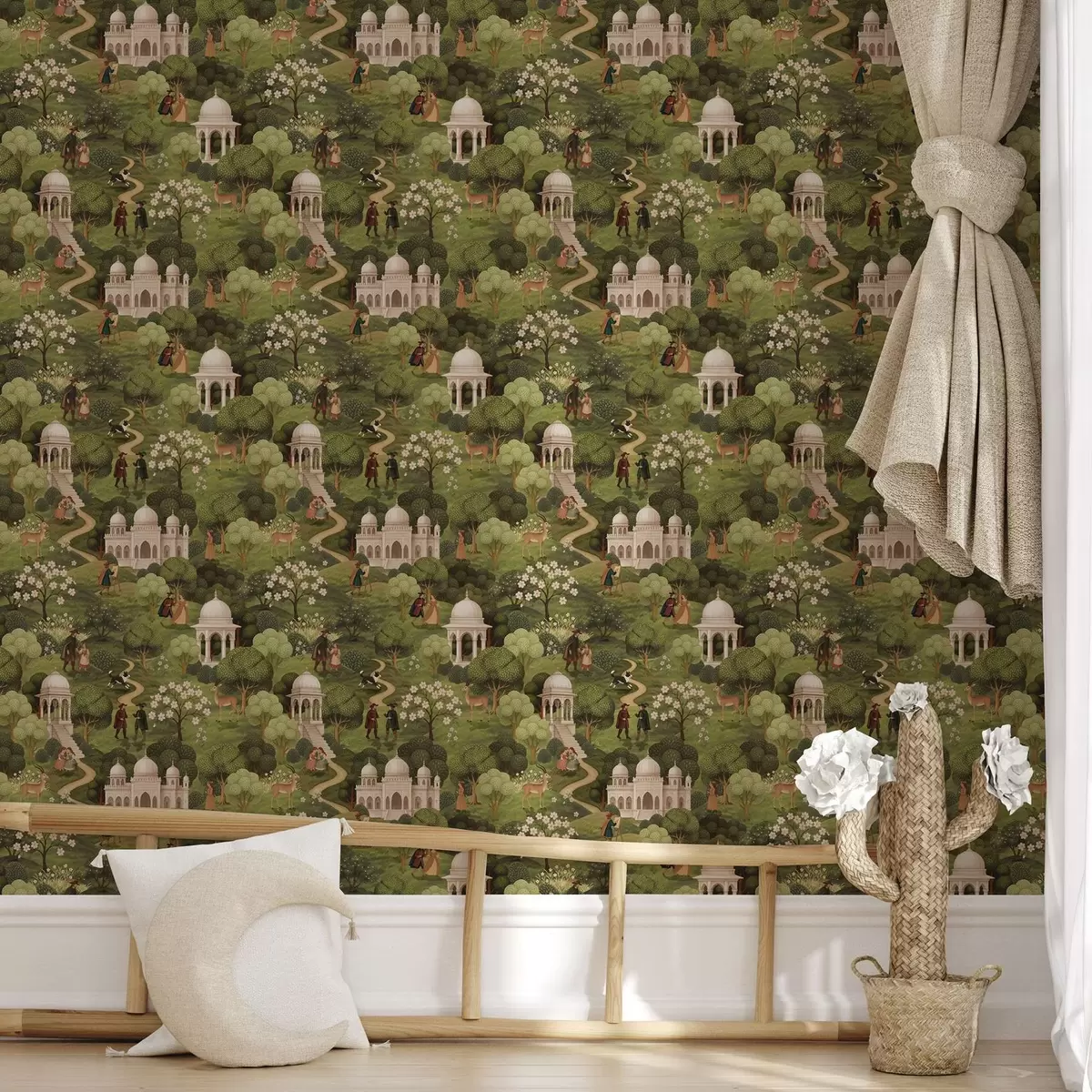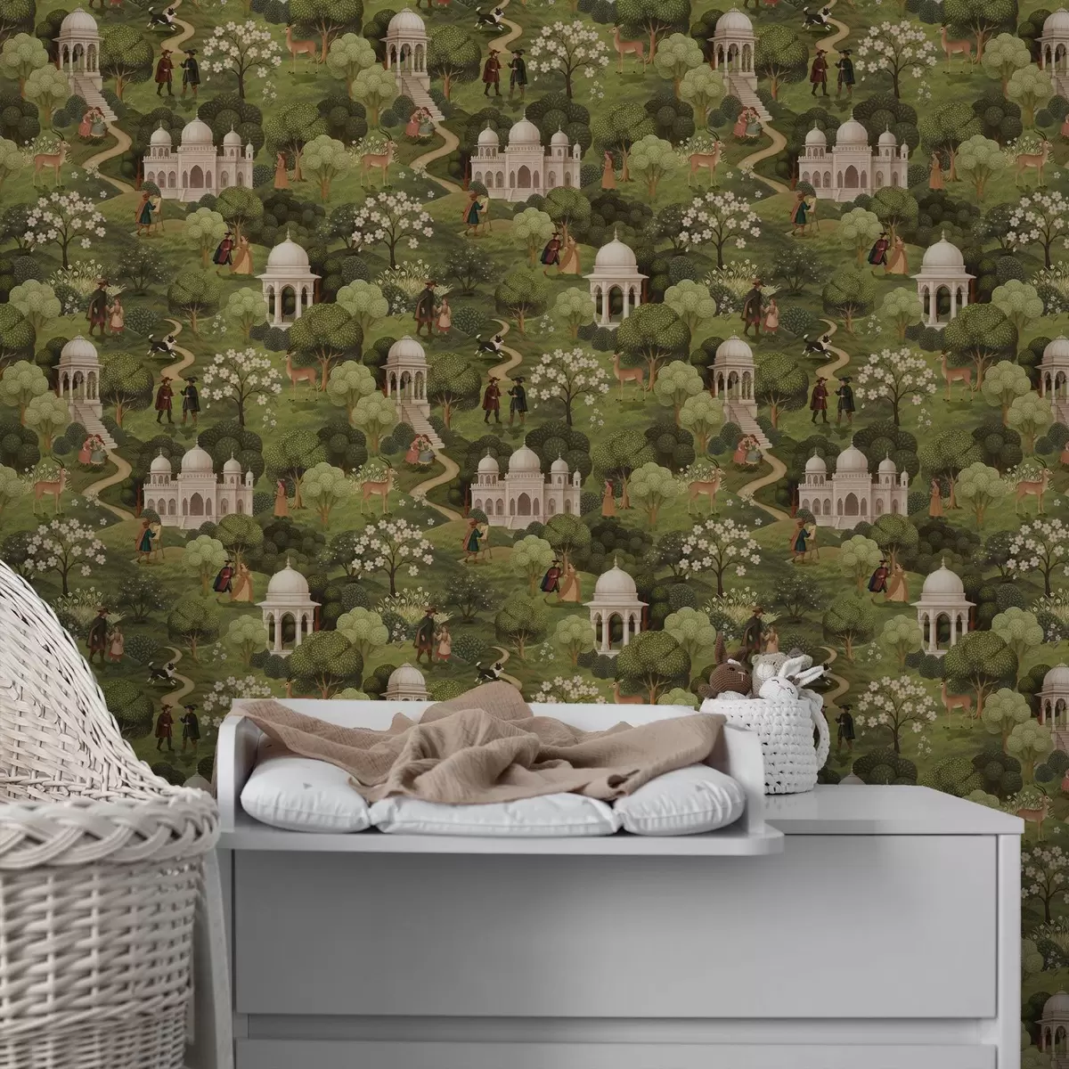 Papel pintado Escena de parque con árboles y arquitectura en estilo paisajístico Nr. a00705