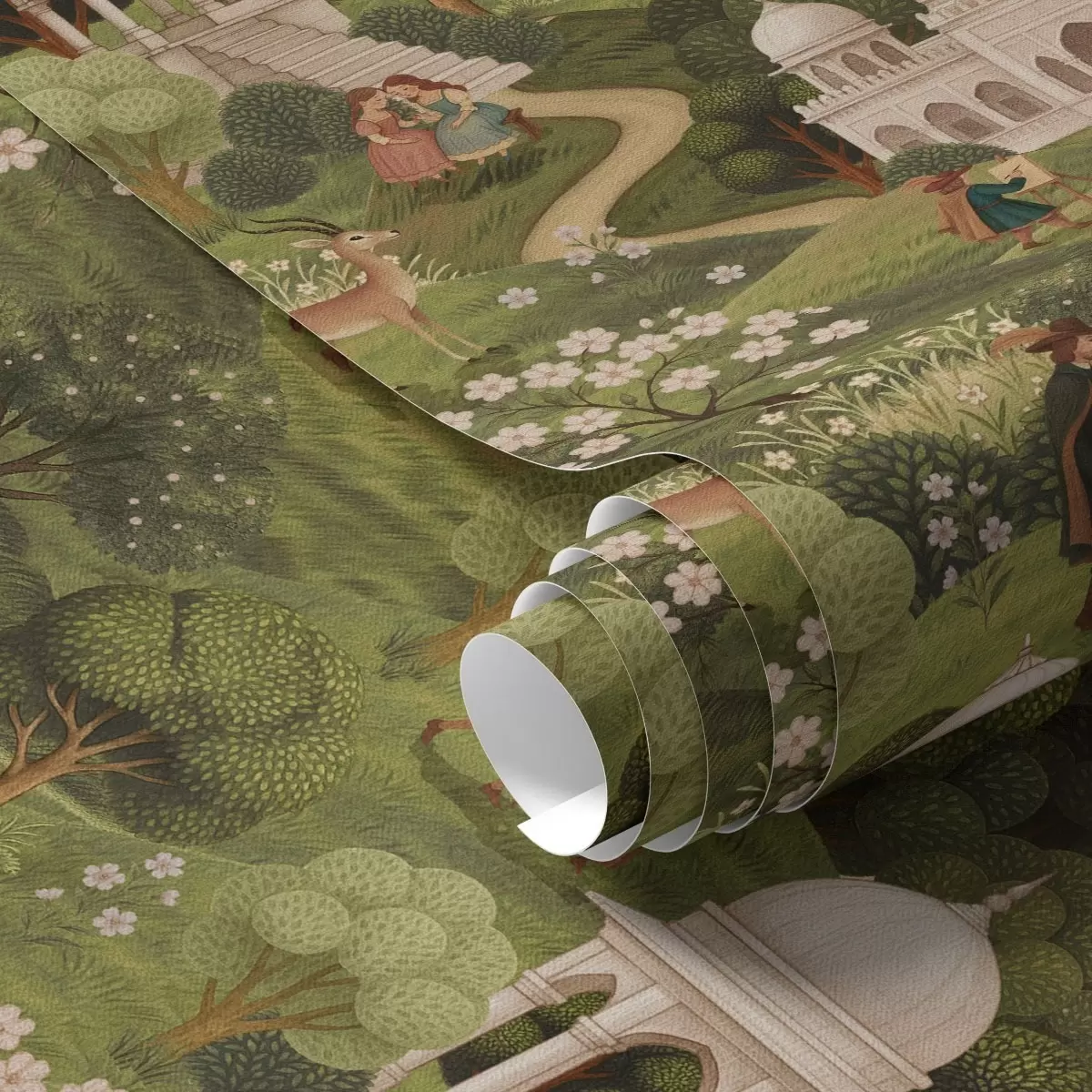 Papel pintado Escena de parque con árboles y arquitectura en estilo paisajístico Nr. a00705