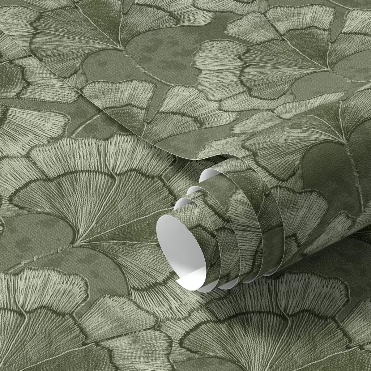 Papel pintado Diseño gráfico con ginkgo en una paleta de colores verdes fríos a00709