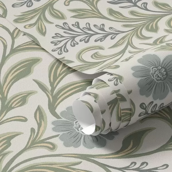 Papel pintado Adorno floral gris salvia sobre fondo claro Nr. a00712