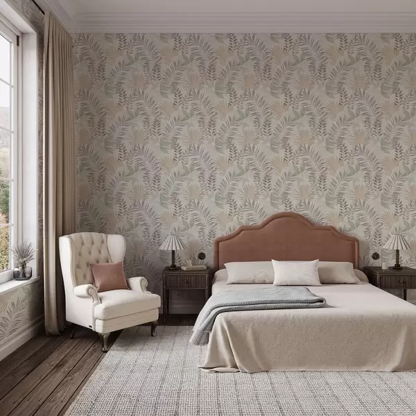Papel pintado Hojas tropicales en tonos pastel sobre un fondo claro, textura sutil Nr. a00725