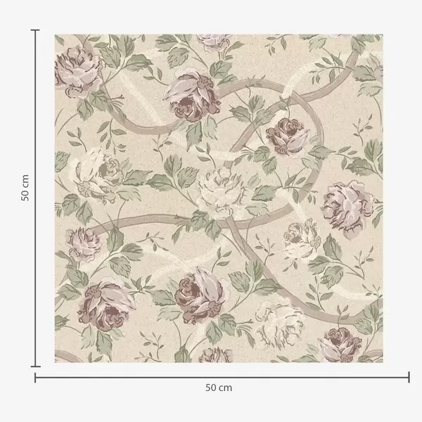 Papel pintado Rosas con hojas verdes sobre un fondo beige cálido Nr. a00729