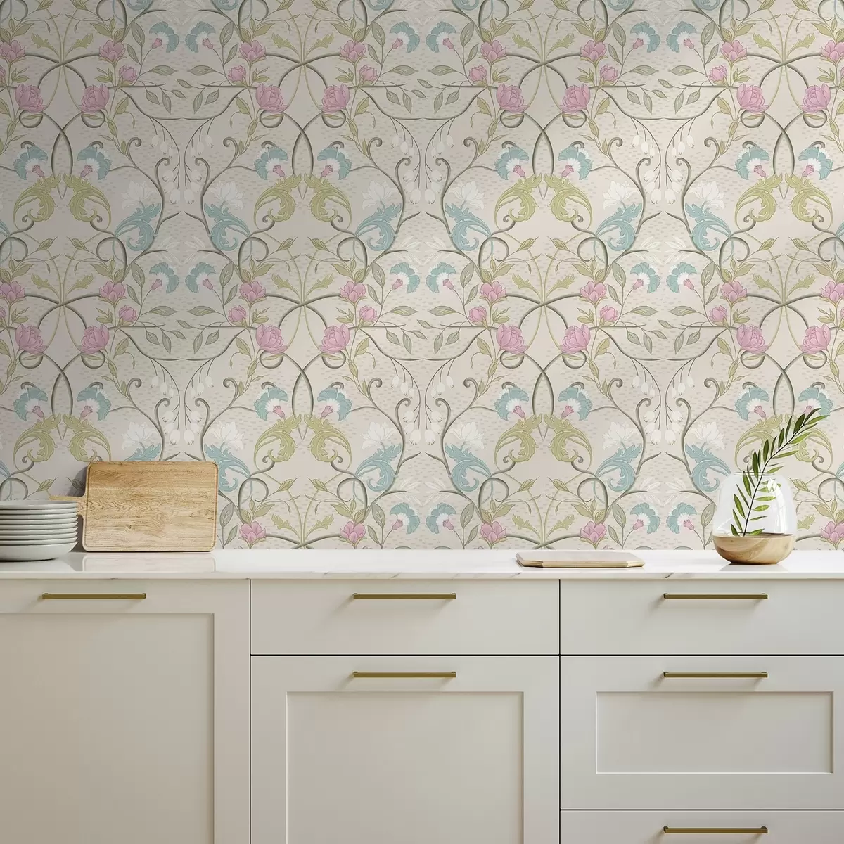 Papel pintado Elegante diseño floral con flores rosas y azules Nr. a00730