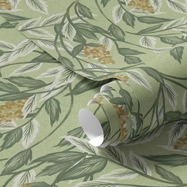 Papel pintado Ramitas con racimos de bayas sobre fondo verde Nr. a00734