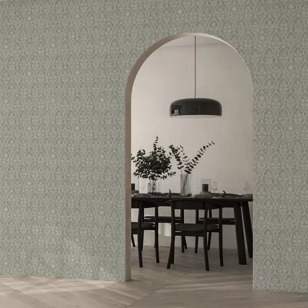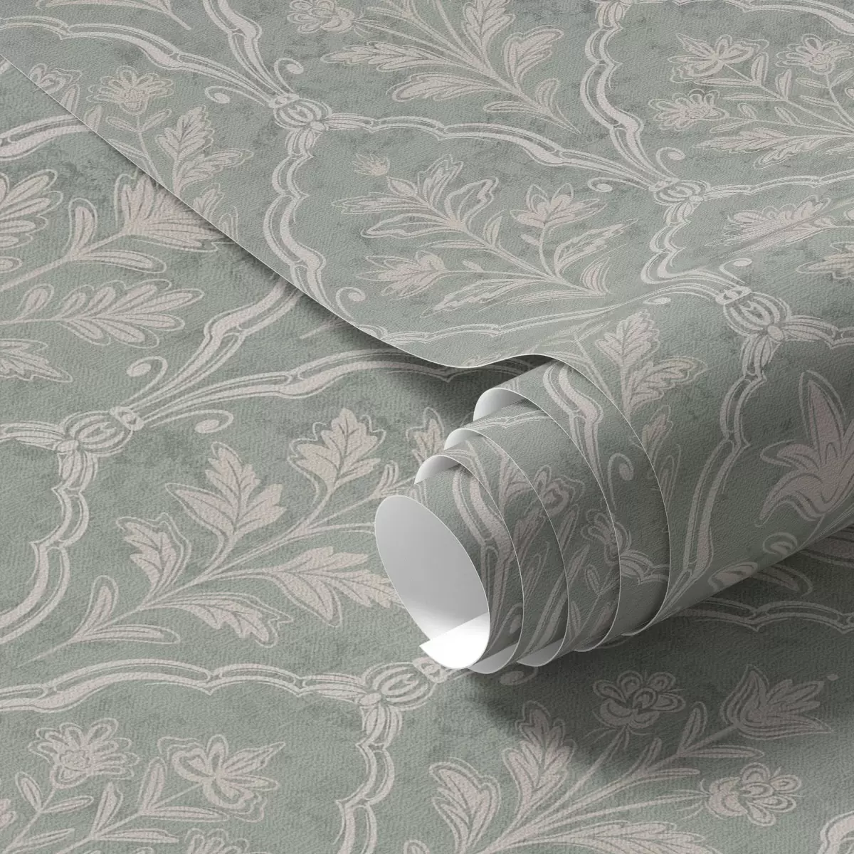 Papel pintado Damasco menta con finos medallones florales Nr. a00741