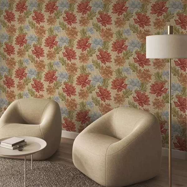 Papel pintado Grandes crisantemos en tonos cálidos sobre fondo beige Nr. a00743