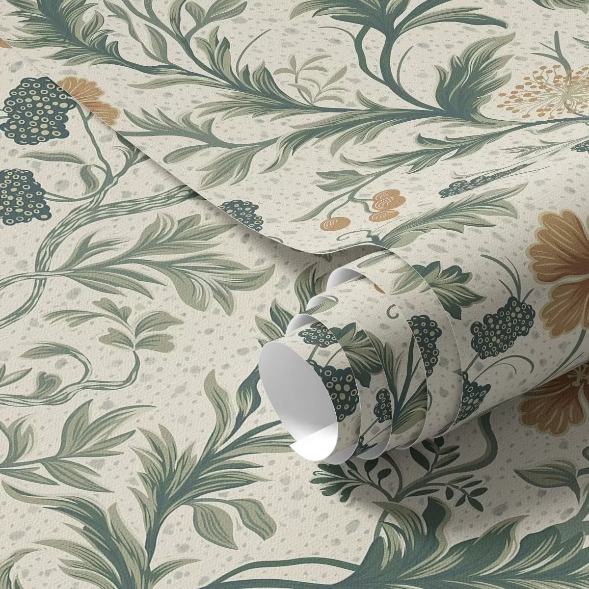 Papel pintado Ramitas delgadas con flores y bayas sobre un fondo granulado Nr. a00744