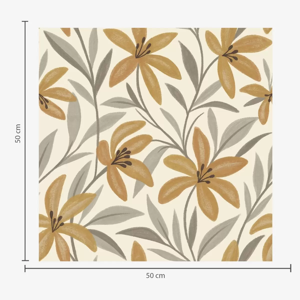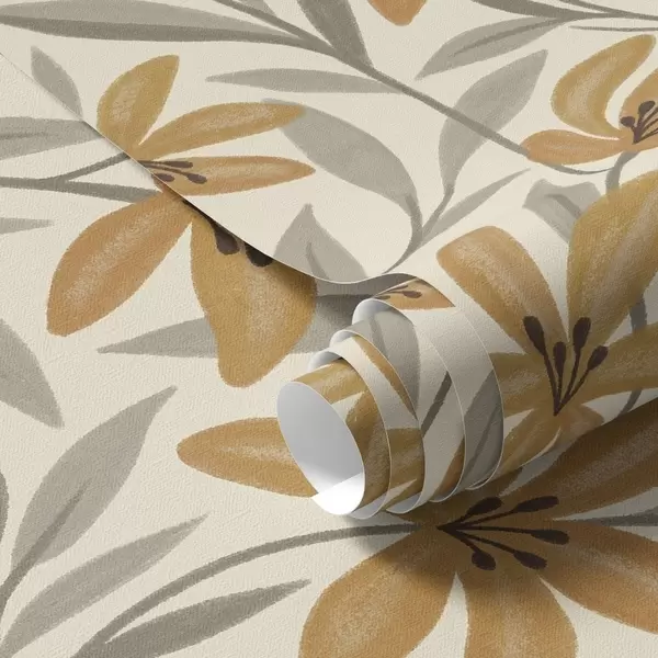 Papel pintado Lirios amarillos y hojas gris verdosas sobre fondo claro Nr. a00757