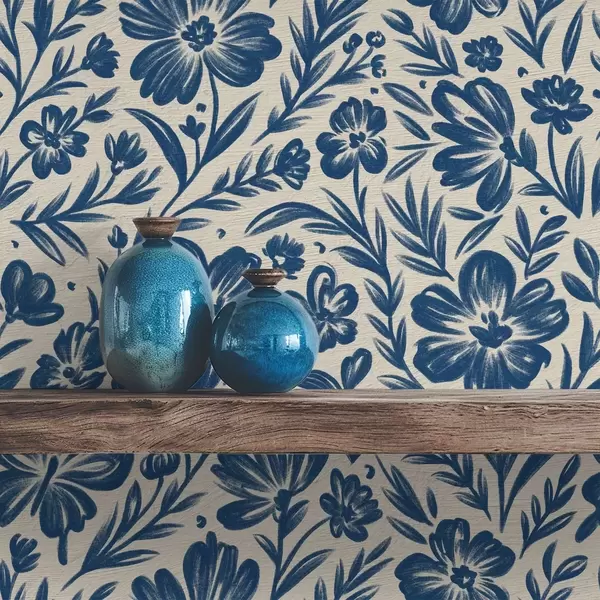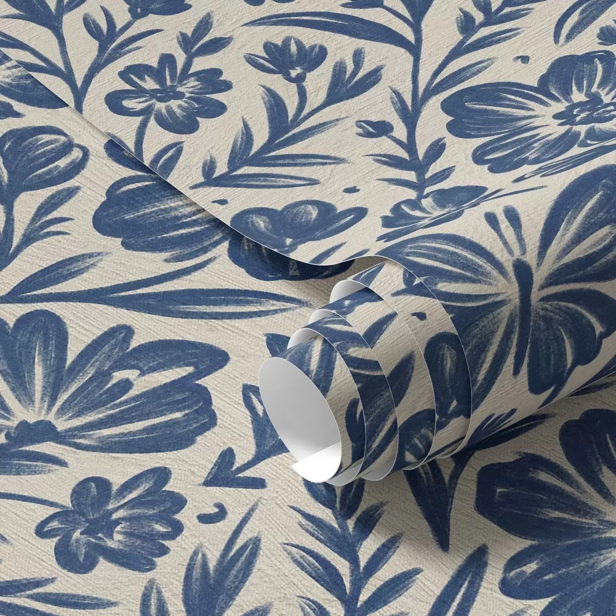 Papel pintado Adorno floral azul con mariposas Nr. a00758