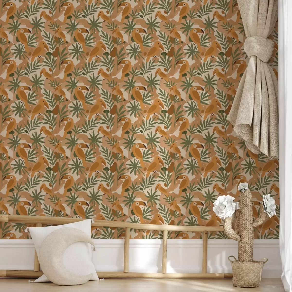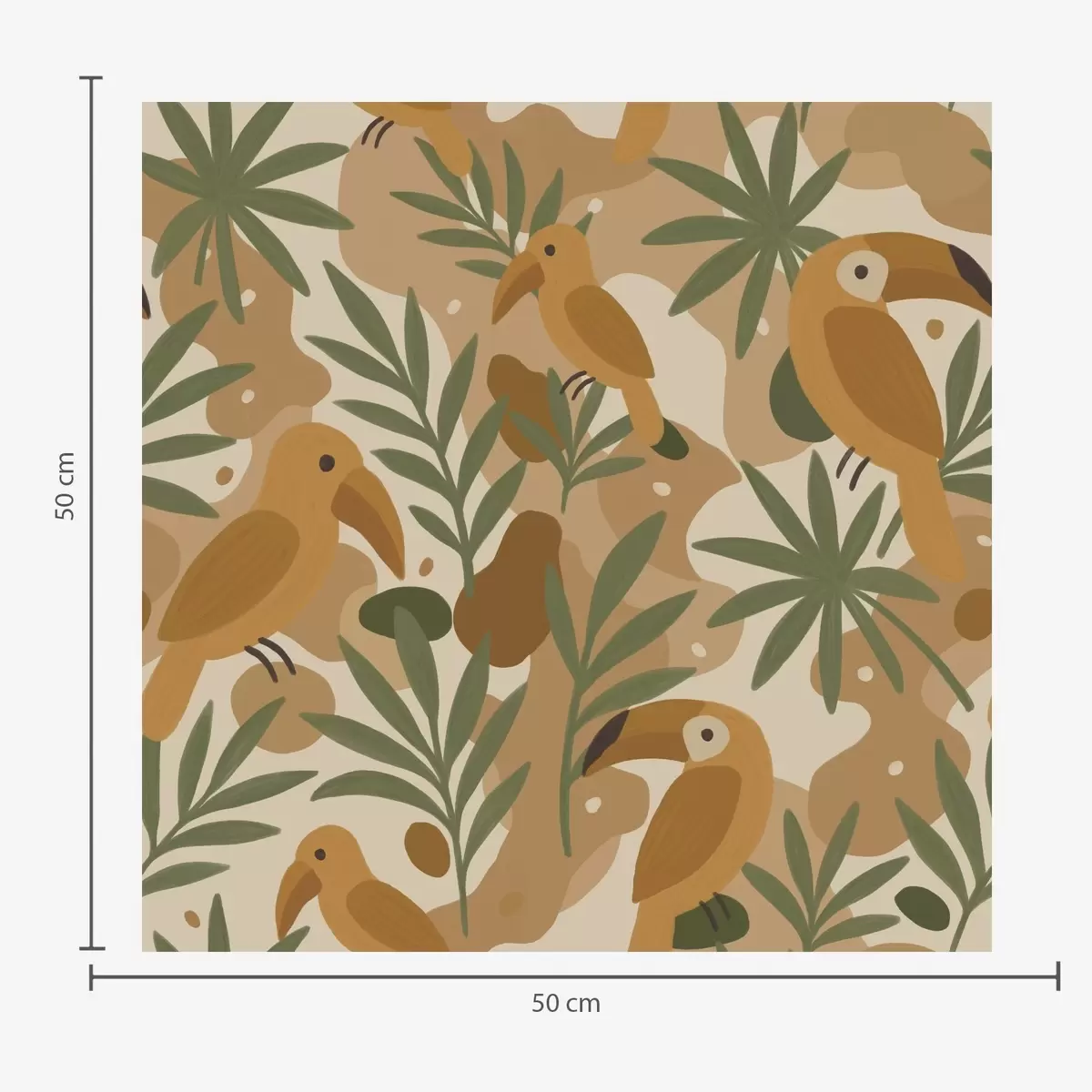 Papel pintado Tucanes estilizados entre hojas de palmera Nr. a00762
