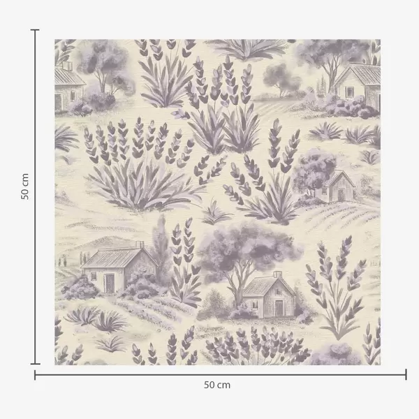 Papel pintado Campos de lavanda y casas en tonos pastel Nr. a00765