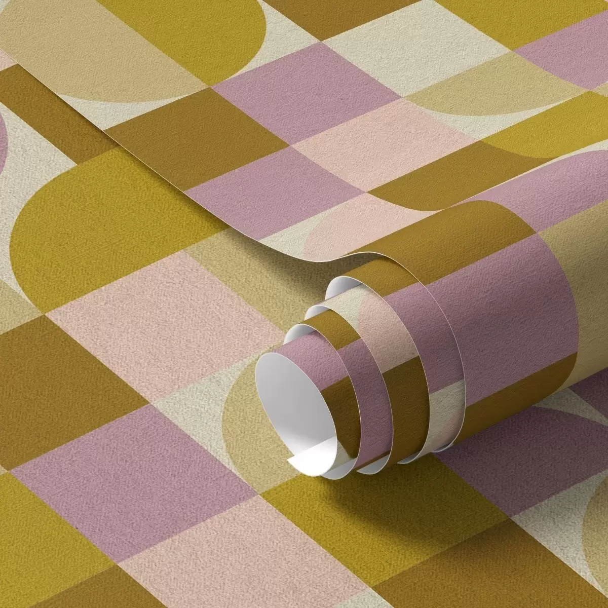 Papel pintado Geometría modular en tonos rosa y mostaza. Nr. a00770v1