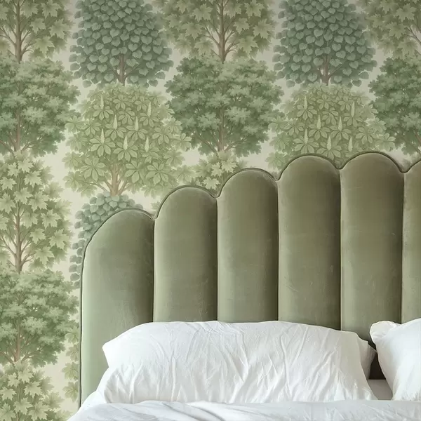 Papel pintado Jardín de árboles en suaves tonos verdes sobre un fondo claro. Nr. a00775