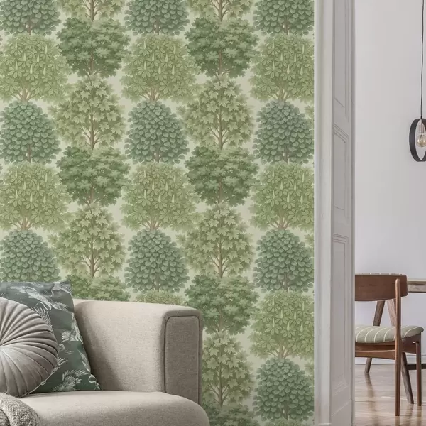 Papel pintado Jardín de árboles en suaves tonos verdes sobre un fondo claro. Nr. a00775