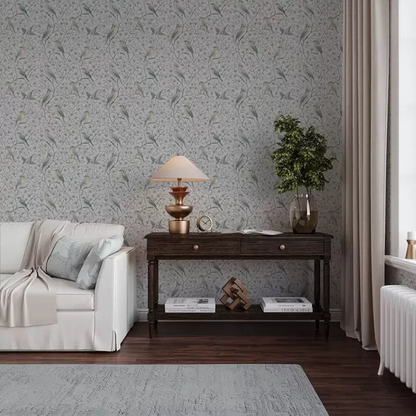 Papel pintado Pájaros en las ramas, esquema gris azulado Nr. a00782