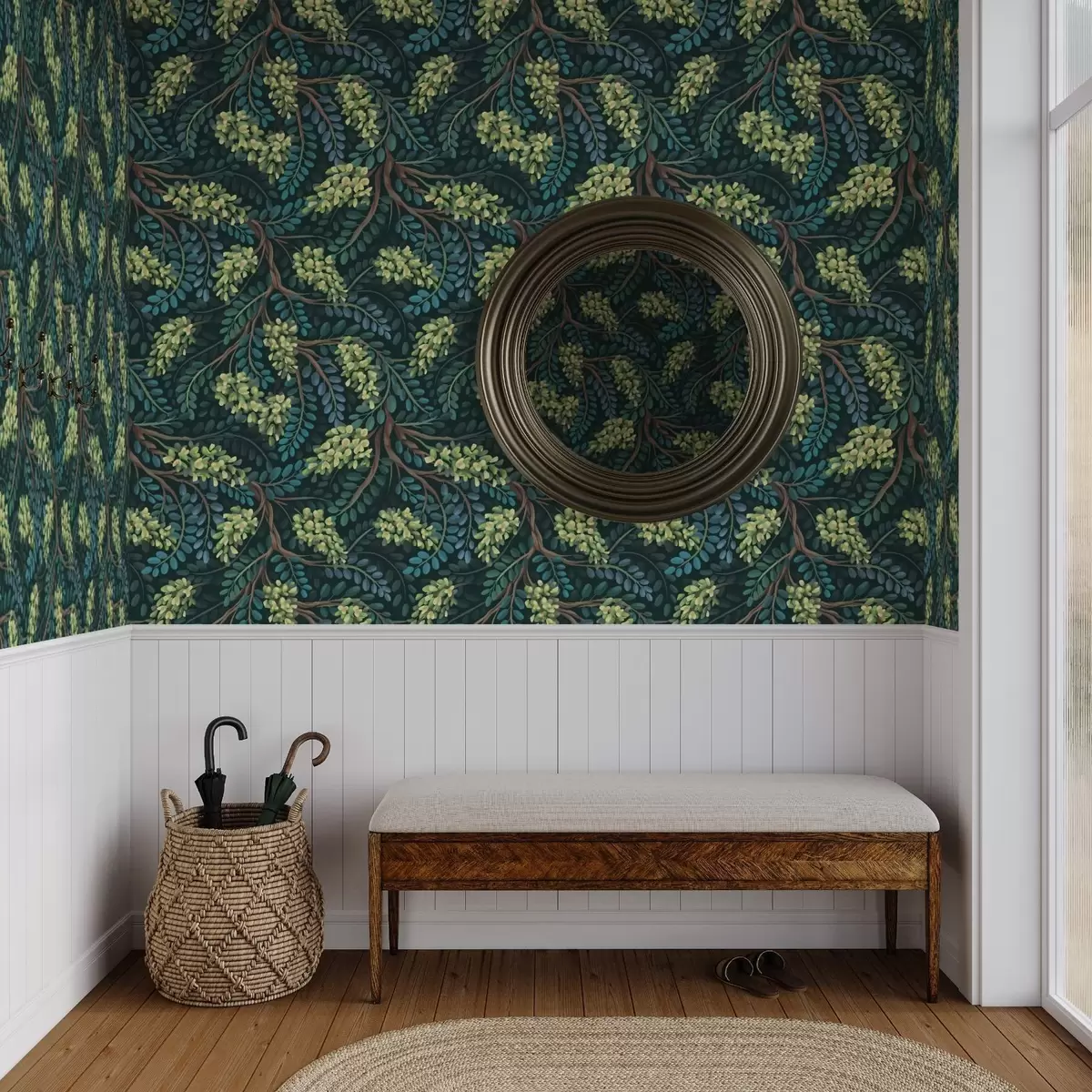 Papel pintado Ramas con inflorescencias verdosas sobre fondo oscuro Nr. a00786