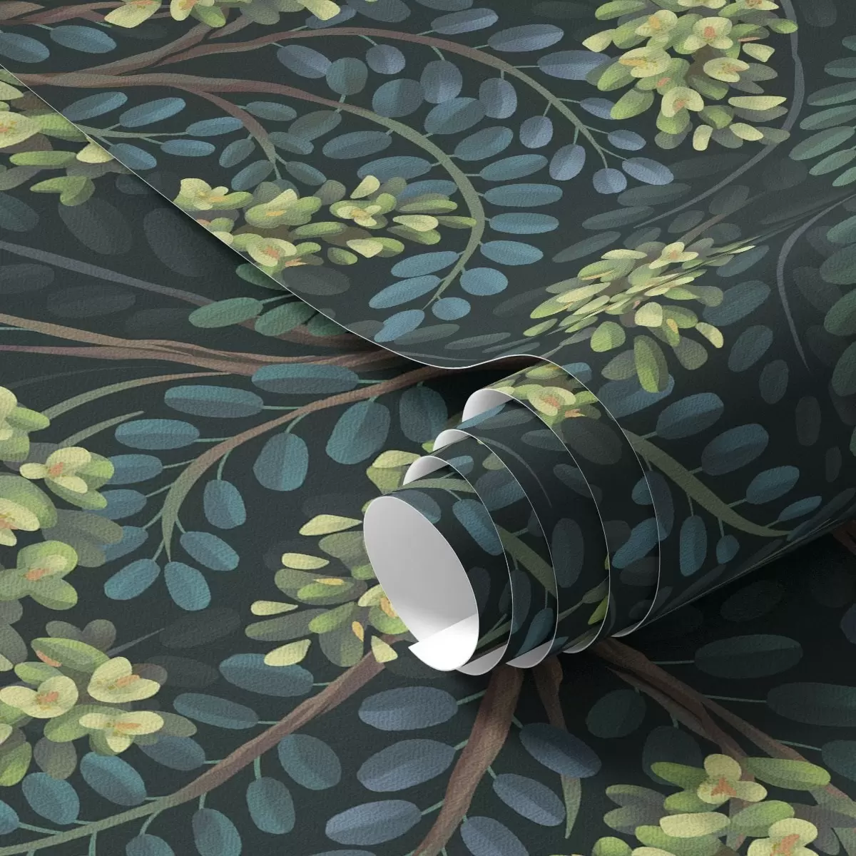 Papel pintado Ramas con inflorescencias verdosas sobre fondo oscuro Nr. a00786