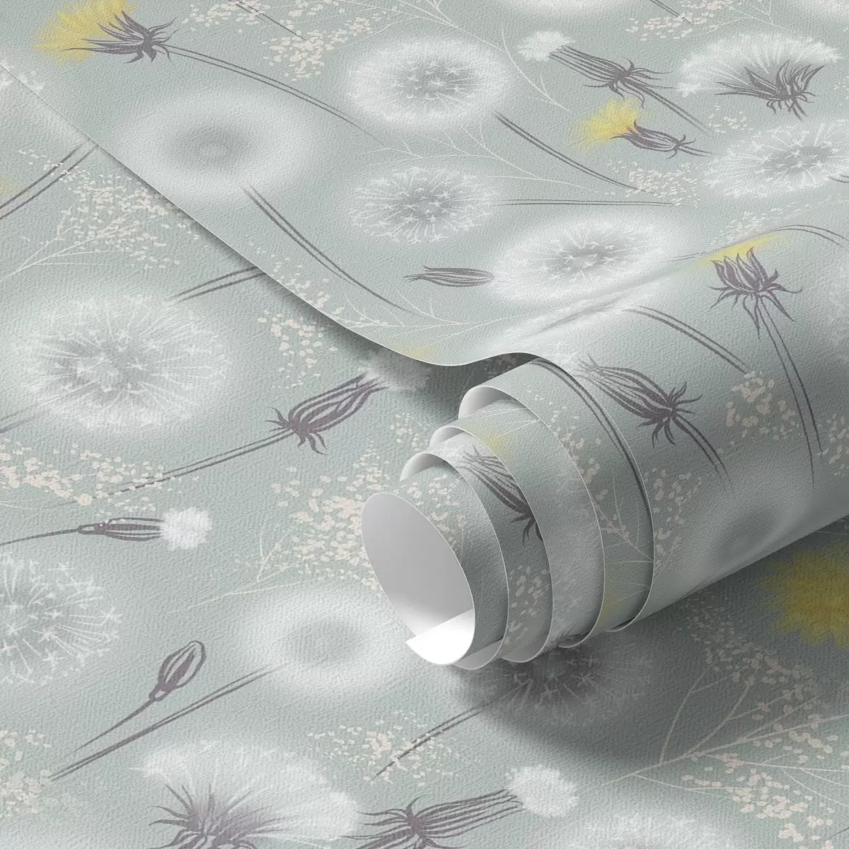 Papel pintado Dientes de león esponjosos y semillas sobre un fondo de menta Nr. a00790
