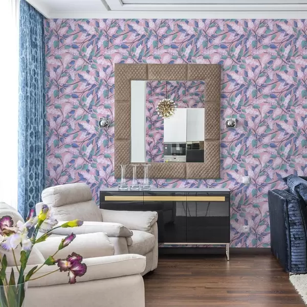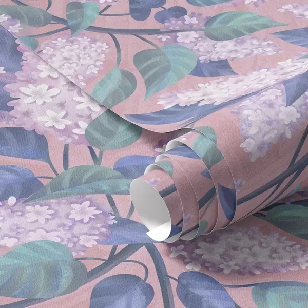Papel pintado Delicadas flores lilas sobre fondo rosa, ambiente primaveral Nr. a00797