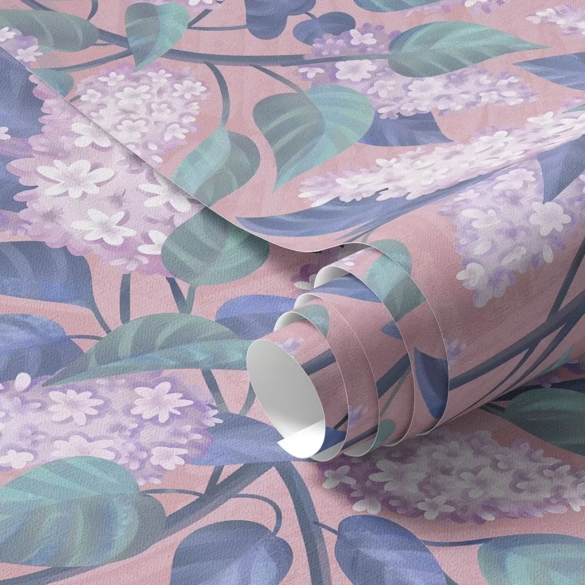 Papel pintado Delicadas flores lilas sobre fondo rosa, ambiente primaveral Nr. a00797