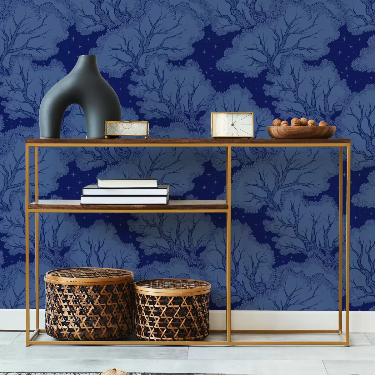 Papel pintado Siluetas de árboles bajo un cielo estrellado en tonos azules Nr. a00798