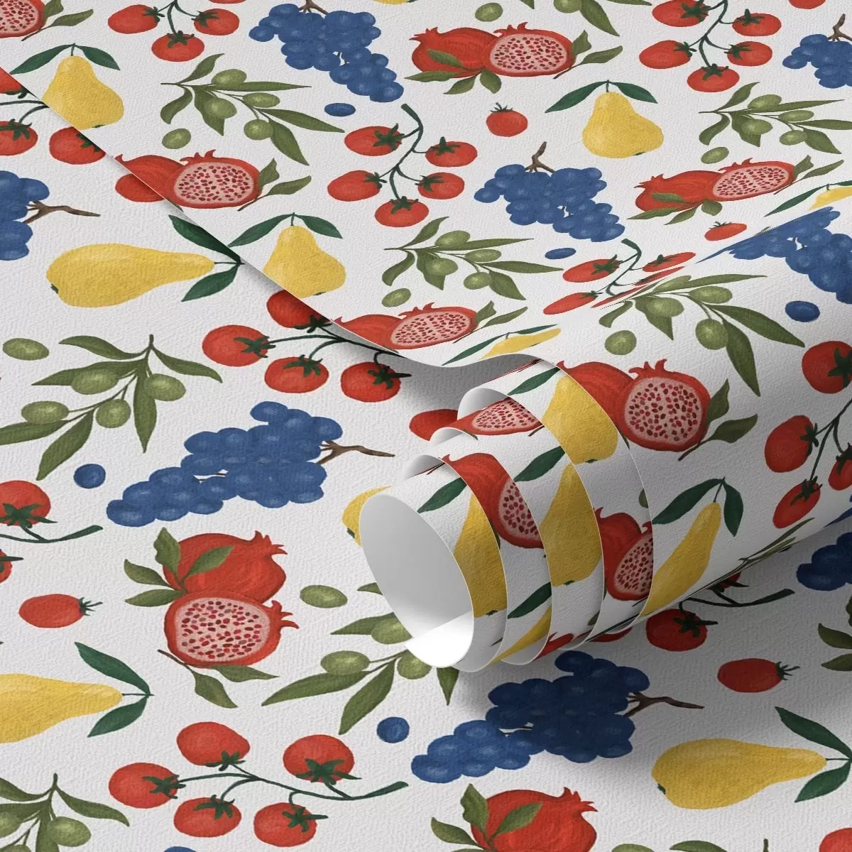 Papel pintado Fruta jugosa: granadas, uvas, peras sobre fondo blanco Nr. a00801