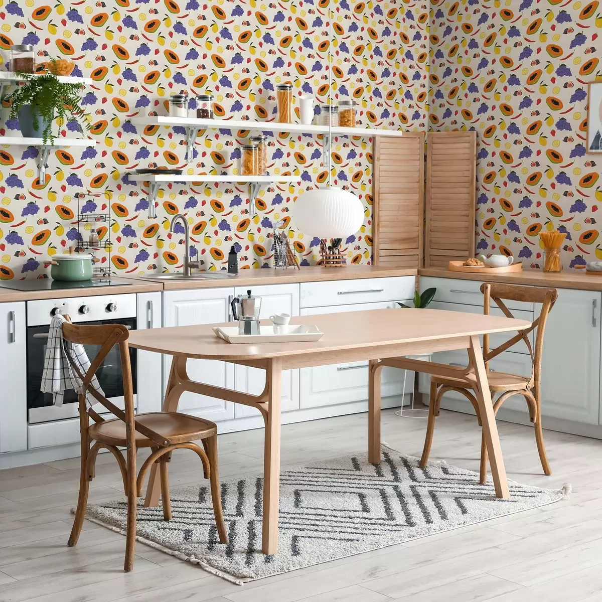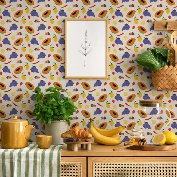 Papel pintado Papaya, uvas y limones: una mezcla de frutas de colores vivos Nr. a00803