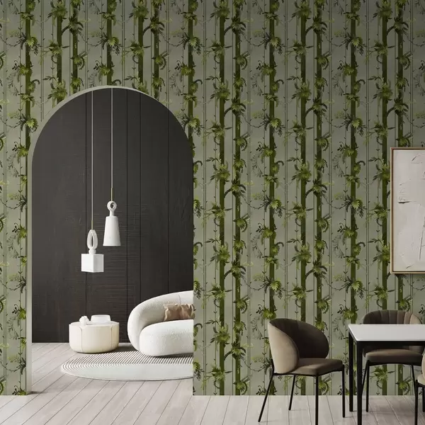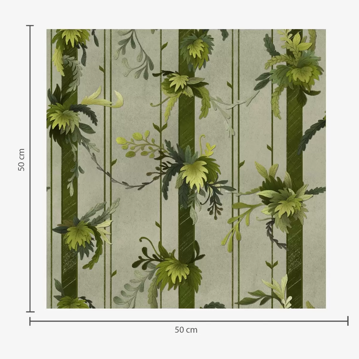 Papel pintado Hojas verdes en rayas verticales sobre fondo gris Nr. a00807v1