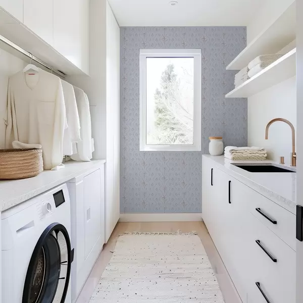 Papel pintado Pequeñas flores y cintas en tonos azul pálido Nr. a00808v1