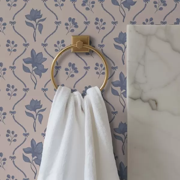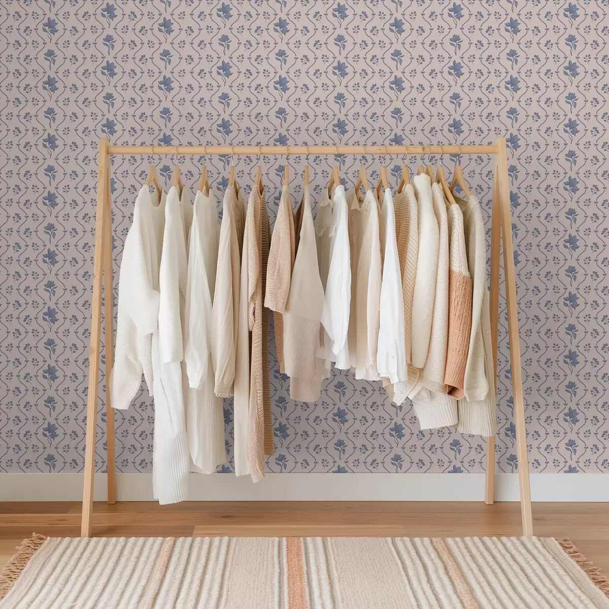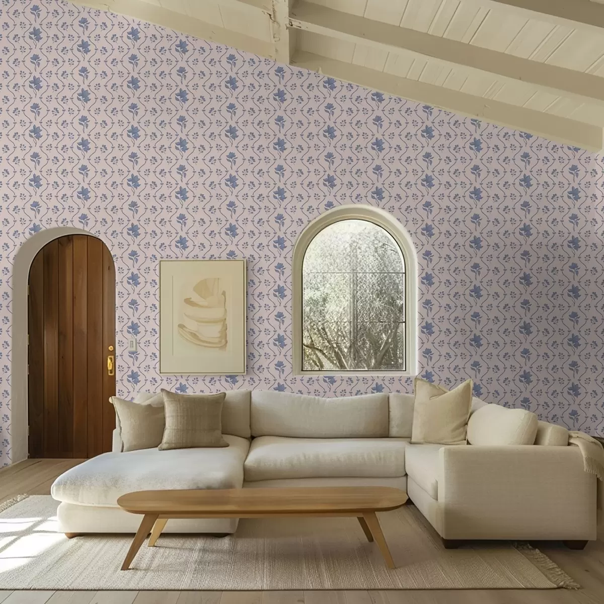 Papel pintado Pequeñas flores y cintas en tonos azules y rosas Nr. a00808v3
