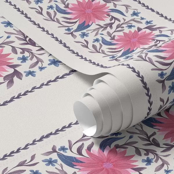 Papel pintado Rayas florales verticales en tonos rosa-morado Nr. a00810